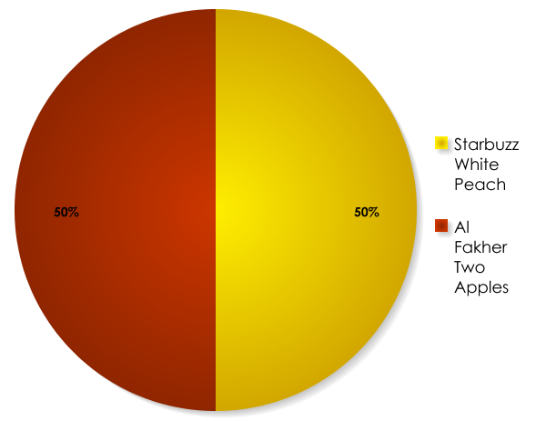 Start with 50% Al Fakher Two Apples, and 50% Starbuzz White Peach. Using your bowl as a measuring tool, portion out half of the bowl with Two Apples and half of the bowl with White Peach. Transfer the tobacco to a separate bowl and mix thoroughly with your fingers. With you mixed tobacco, pack it into your bowl of choice as you usually would.