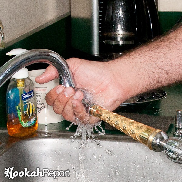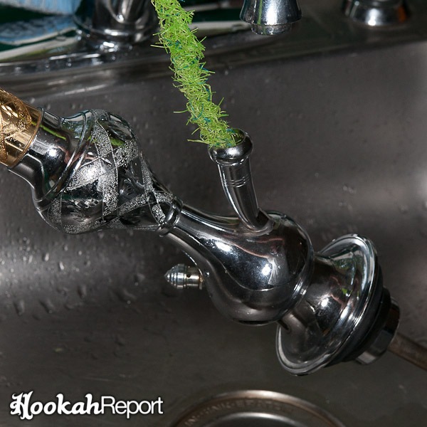 Smaller hookahs pose little question about how to clean them. They fit in the sink. Larger hookahs, on the other hand can seem pretty daunting. Trying to figure it out for yourself can take a lot of trial and error and can take a lot of time. Some fill a bath tub and clean them that way. Others take them outside and use a garden hose. But this isn’t necessary. Any hookah can be successfully cleaned in a kitchen sink, and with practice, can be done in less than one minute. Reviews here at HookahReport are always performed on a clean hookah, so we’re cleaning hookahs a lot.