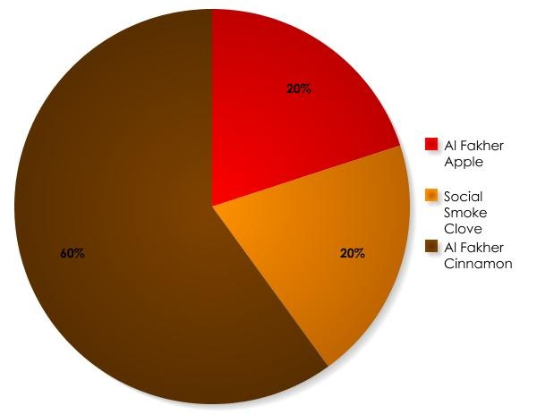 Start with a strong Al Fakher Cinnamon base of about 60%, then add just 20% Al Fakher Apple (Do not use Two Apples flavor, or Bahraini Golden Apple because the Anis flavoring will throw off the whole mix dramatically), finally finish with the final 20% with a clove flavor. I find that Social Smoke’s clove works perfectly, but you will have varying levels of success with other brands of Clove as well.