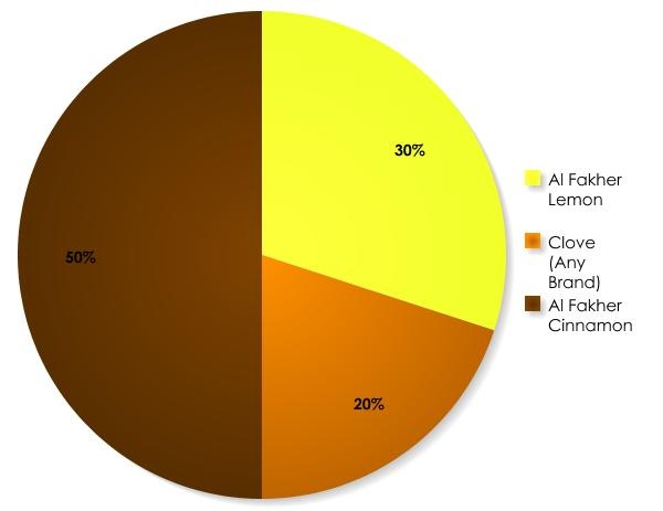 Use 50% Al Fakher Cinnamon, 30% Al Fakher Lemon (Al Fakher’s lemon is tart-citrus and is generally more realistic than Nakhla’s lemon flavor). Other lemon flavors may work, but the key will be to select a lemon flavor that is tart, rather than sweet. Avoid ‘Lemondrop’ and ‘Lemonade’ flavors. Finally, add 20% clove flavor and you’re finished. Just mix it up with your fingers as you usually would, and enjoy!
