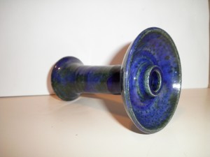 With your less dominant hand, create a letter “C” with the thumb and forefinger. Then place that “C” on top of the foil holding the foil in place. With your dominant hand, pinch the foil that is on the opposite side of the bowl between your thumb and forefinger and pull away from the center of the bowl. Once the foil is tight, fold it down and under the bowl. Turn the bowl about 30 degrees and repeat the pull and press process until the face of the bowl is cover in foil that is drum tight. If there are some wrinkles or places around the rim of the bowl that aren’t perfect, loosen the foil just a bit and re-pleat the area of concern. Then pull the excess foil down the neck.