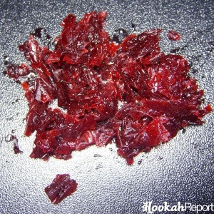 Al Fakher Energy Drink has the typical Al Fakher cut. It is a medium to fine cut, and this batch of 50 gram boxes that I received had very little stems, to almost none at all. The tobacco is very wet and dyed red, a very typical practice of Al Fakher.